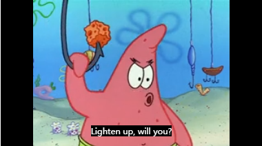 lighten本就有“心情好转,高兴起来”的意思,所以这句口语就是用来表示“放松点,别紧张”。