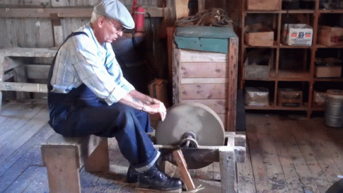 grindstone,顾名思义在英语中是“磨石,砂轮”的意思,它在英语中的意思是a large, round stone that is turned by a machine and is used to make tools sharper or sharp edges smooth。也就是说在这里我们可以把它当成“砖”的意思。