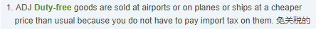 多说一句,“free”这个意思还是很常见的,就比如出国的时候免税店或者机场买免税商品的时候,会看到结账旁贴着:duty-free 免税,“free”跟上面的意思一样,都是“免于...的”,也可以使用:tax-free.