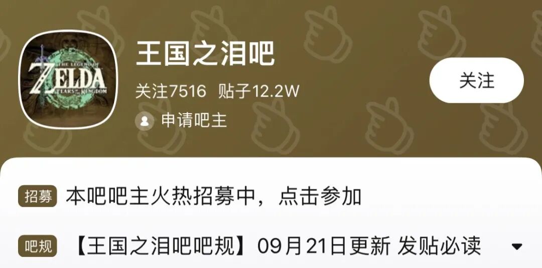 但如今这种颇为混沌的场景,却让大伙在王国之泪发售前,失去了一个彼此交流讨论的主阵地——已经有不少人选择转战塞尔达传说吧亦或是NS吧。