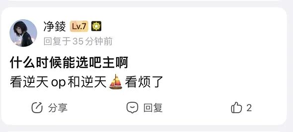如果说那些反串乐子人的行为让人恼火,那么贴吧官方坐视不管的态度,就让玩家有些寒心了——只要早点评出吧主,这件事其实是可以短时间结束的。
