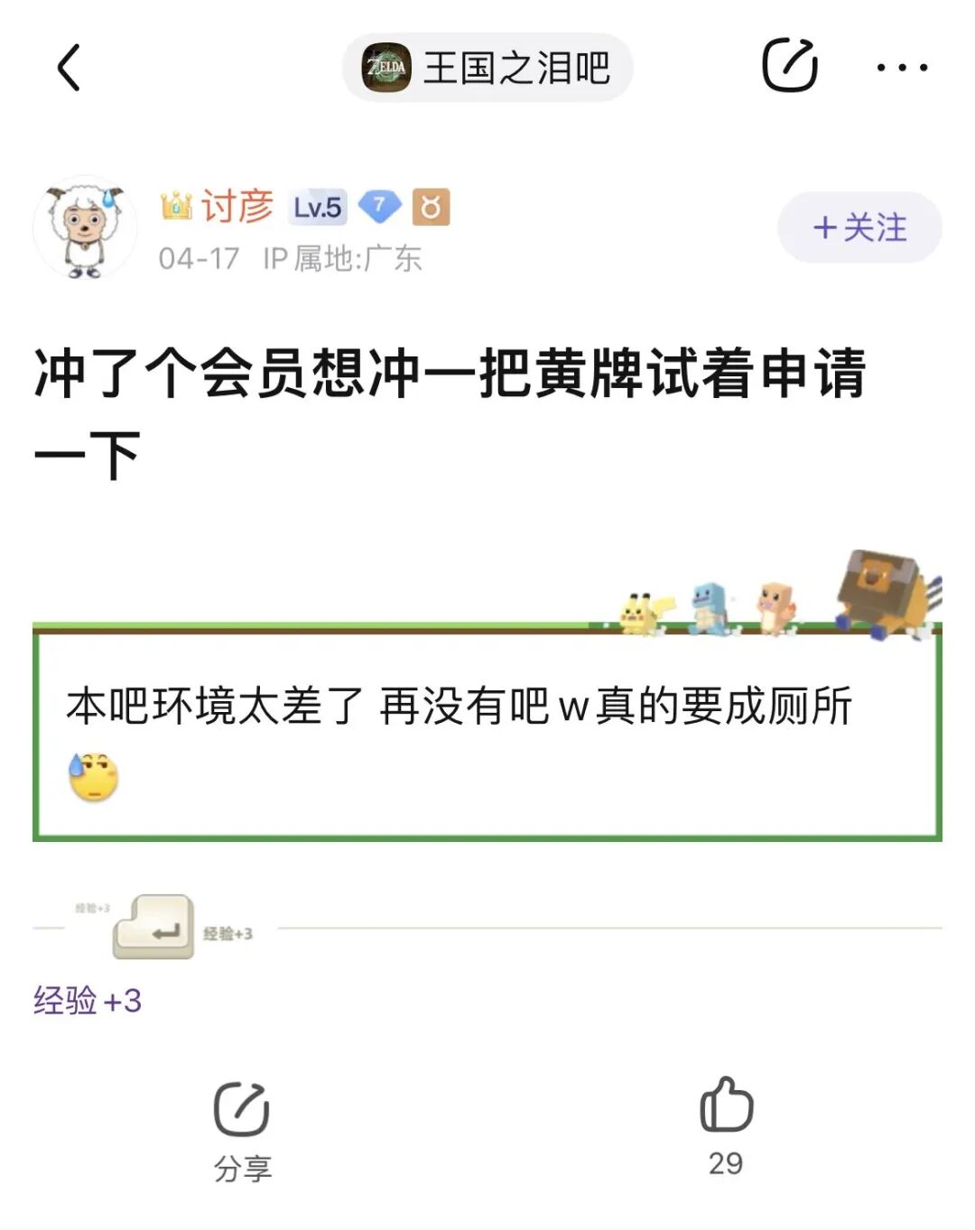 更何况从目前的来看,那些正儿八经想要讨论《王国之泪》相关内容的贴吧老哥们,在等级上很难和那些反串的魔怔人相比。
