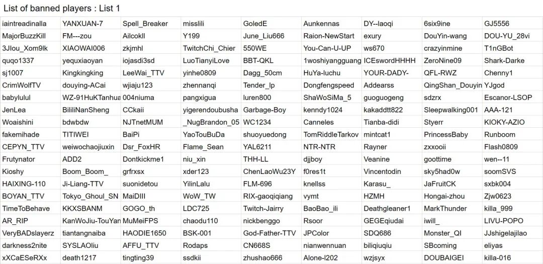 当然,官方并不是完全不作为,比如前不久《逃离塔科夫》制作公司的CEO尼基塔便点名痛骂塔科夫中的外挂玩家,游戏官方更是公布了一份封禁外挂的名单(每隔五分钟更新一次),让所有玩家在路过的时候都能吐一口口水。