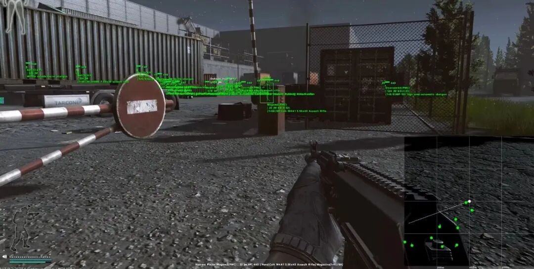 而他所使用的外挂,也是塔科夫中最常见的“雷达”+透视。在左下角的小地图上,能够清晰地看到自己和其他人的位置和朝向。