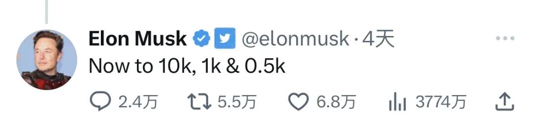 然后他自己“服软”,并且难得“大方”了一次:将每天可浏览的推文额度分别提升到了500、1000、10000……