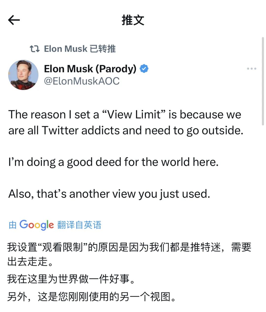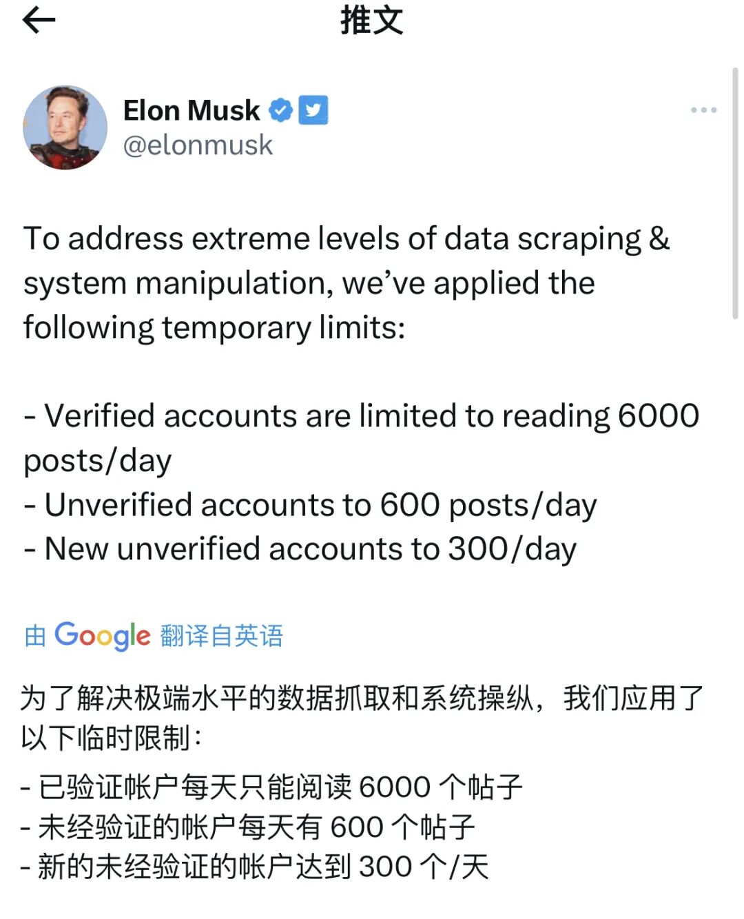 但马斯克最终给出的解决方案,却是让大伙都完全没有想到:对所有人的访问次数进行限制。