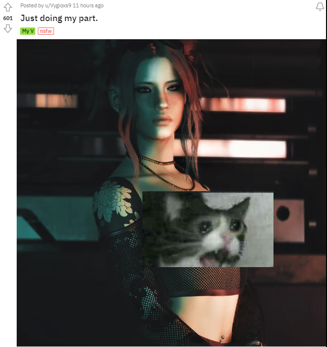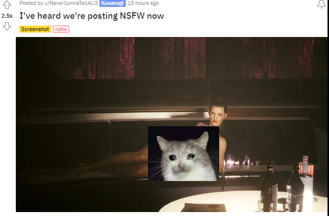 好了,涩图差不多只能聊这些了,为了这篇文章还能出现在大家眼前,感兴趣的话大家还是自行去reddit的r/cyberpunkgame版块欣赏吧。