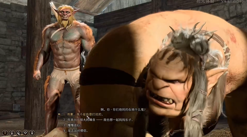 例如,当你经过一间破旧的屋子的时候,你会发现两个体型悬殊的兽人正在亲密的“交流感情”。