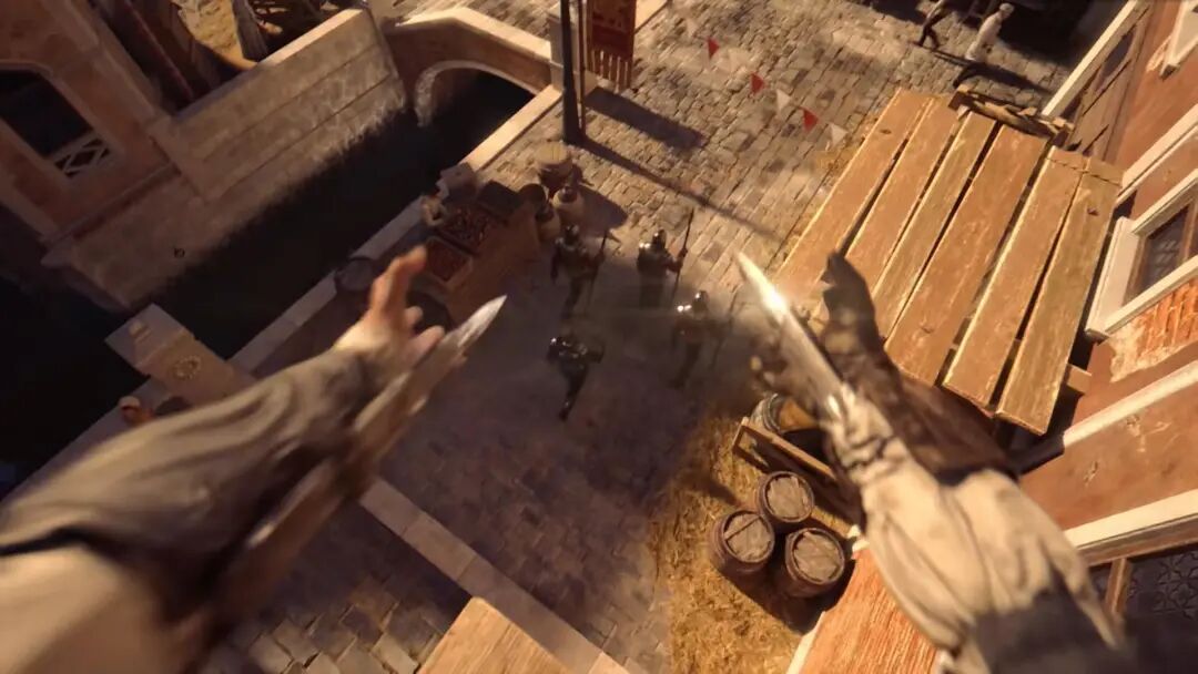 当然,正如育碧官方所说,经典玩法在回归的同时也会加以现代演绎。暗杀动画被优化和重制,NPC侦测和AI得以改进。在跑酷时,你可以通过破坏场景中的互动物体,进一步甩开与追兵的距离;在暗杀时,你可以提前选择多个目标,施展“飞雷神”快速连杀技能;在潜行时,也可以通过鹰眼视觉和老鹰伙伴,提前仔细侦查一番。