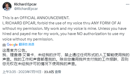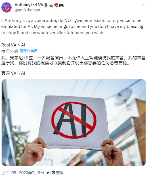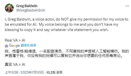 虽然AI声音的确在某些情况下提供了许多便利,制作者可以以更低的成本进行创作,但是从配音演员的角度来看,当AI无需经过任何许可或付费就可以模仿和复制他们的声音时,这无异于是摔了人家的饭碗。