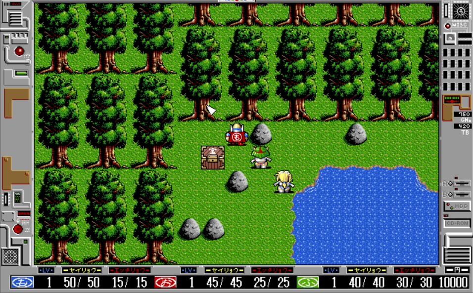 和千禧年前后在日本草台创业的很多班子一样,一开始的I社其实并没有一头扎进3D游戏中,反而在2D世界里浸淫一段时间,发售于1993年的《エンジェルアーミー》(天使军队)便是I社的第一款作品。如图可见,这是一款标准俯视角的2D点阵画风的RPG游戏。