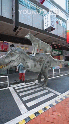 有做美工的网友用PS把“恐龙扛狼”给具象化了,甚至还有的大手子直接用建模软件做出了3D版本的,还原程度100%。