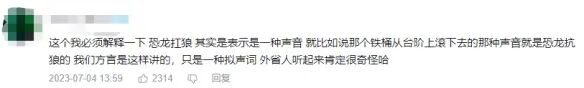 而这个经典的“恐龙抗狼”,也是当地的一种方言拟声词 “空隆抗朗(大概就是这个读音)”,意思是就像铁桶从台阶上滚下去的声音那样声响很大。