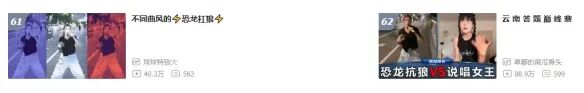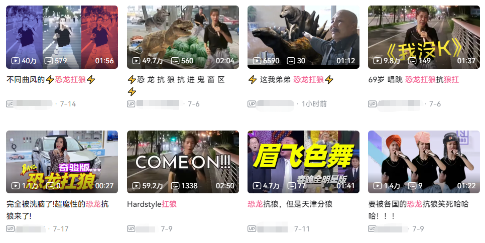 在B站上,你会看见有关“恐龙扛狼”的视频已经开始进攻鬼畜区,并且有的还登上了全区排行榜。