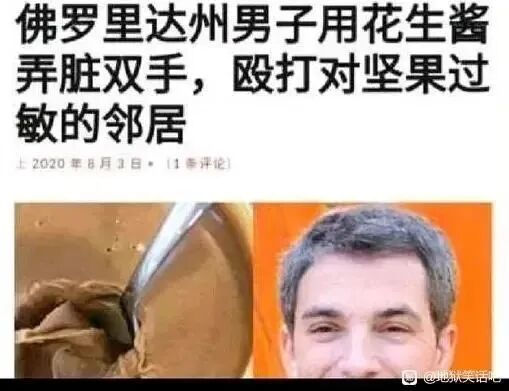 “佛罗里达州一男子双手沾满花生酱,殴打对坚果过敏的邻居。”