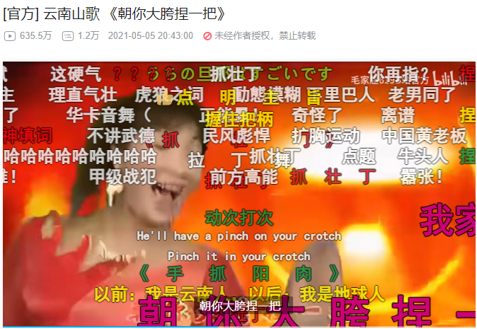 更离谱的是,根据云南当地人说,现在B站上的这些云南山歌还是“绿色版”的,原版还要粗暴很多。