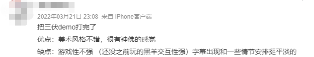的确,去年游戏的Demo推出之后,也有一部分玩家提出质疑,认为《三伏》的游戏不是很强。