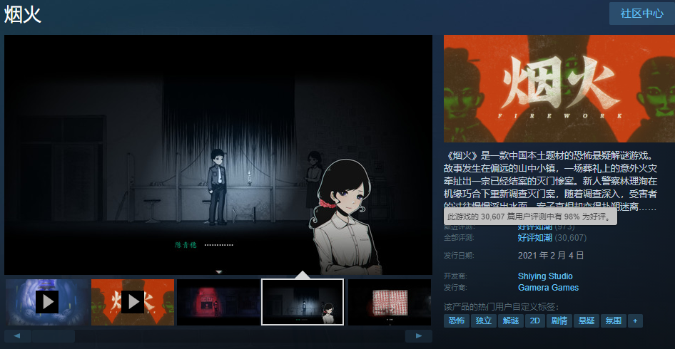 作为拾英工作室制作的第一款中国本土题材恐怖游戏,《烟火》独特的画风和深度的剧情,着实是惊艳到了不少包括我在内的恐怖悬疑游戏爱好者,也让我们开始期待工作室后续的作品。