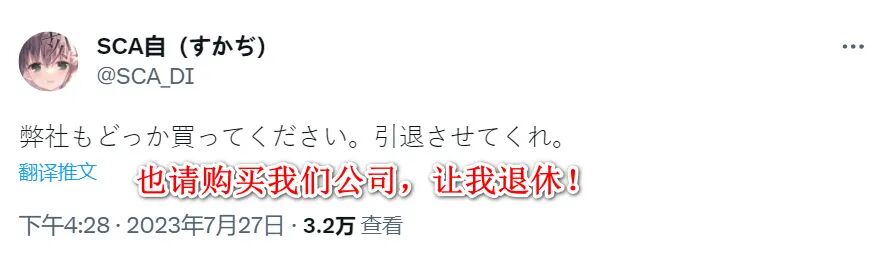 枕社制作人「SCA-自」(《终之空》《樱之诗》等)连发三条推文表达了自己的羡慕之情