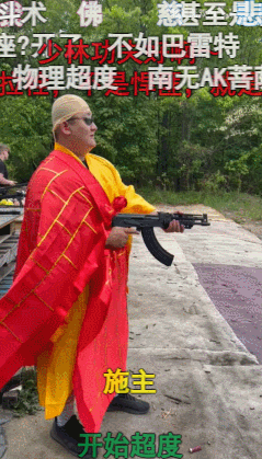只见“佛祖”手拿一把AK,先是单手鞠躬,再是轻按扳机,用更为“通透”的方法进行物理超度。