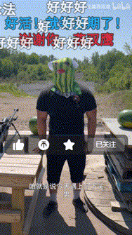 像是有一次把蒙上了西瓜条表情包的西瓜放在远处,然后一枪射穿;