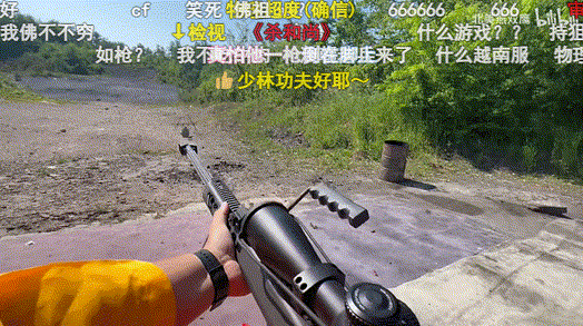 更牛的是,这位UP主还喜欢玩单手巴雷特+撞火(右手食指卡在扳机,利用后坐力让半自动步枪快速连射,打出全自动的效果),别看人家看起来轻松,但能够做到这样的,身体各方面的素质一定是非常强的。