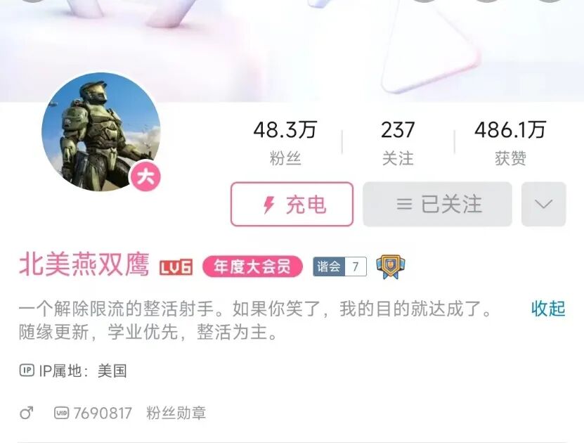这位“佛祖”,也就是名为“北美燕双鹰”的B站用户,是一位居住在美国的整活UP主。