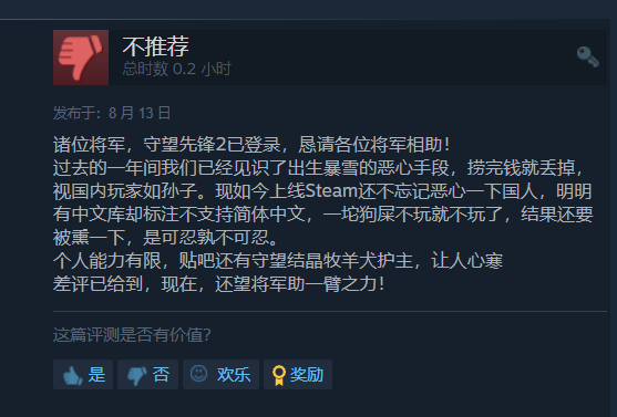 过往国服的OW玩家,可能都会对《守望先锋》有那么一股怨气,好的《守望先锋:归来》突然变成了“守望先锋:归西”,可以往在战网和PS上可并没有差评渠道供大伙发泄。