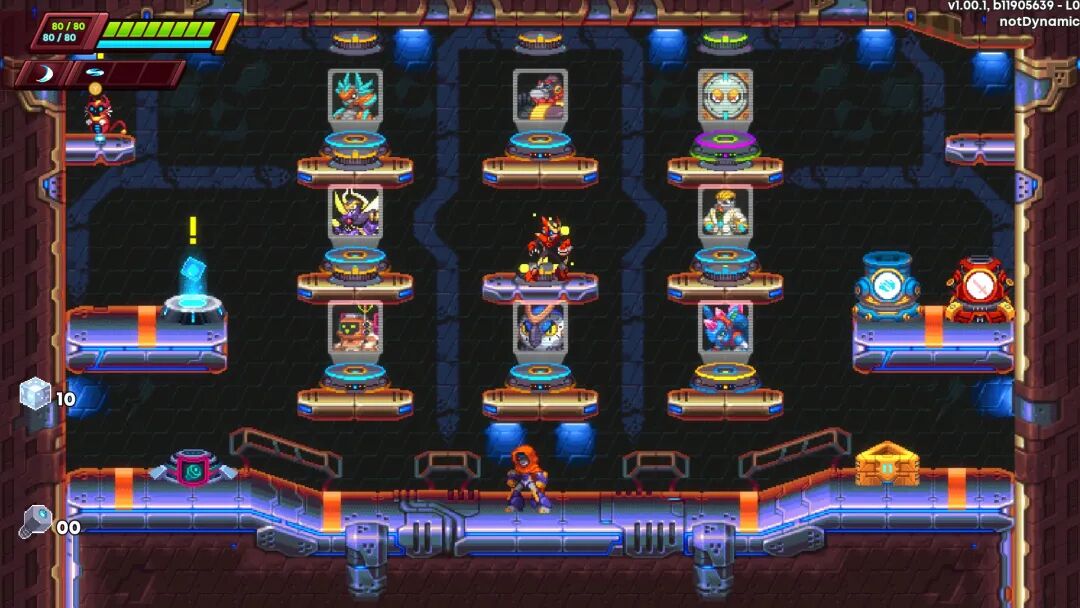 为了更好的适配Roguelike这部分内容,《30XX》在角色血条、伤害设定上做了相当明显的改进,这一点和洛克人有着十分明显的不同。