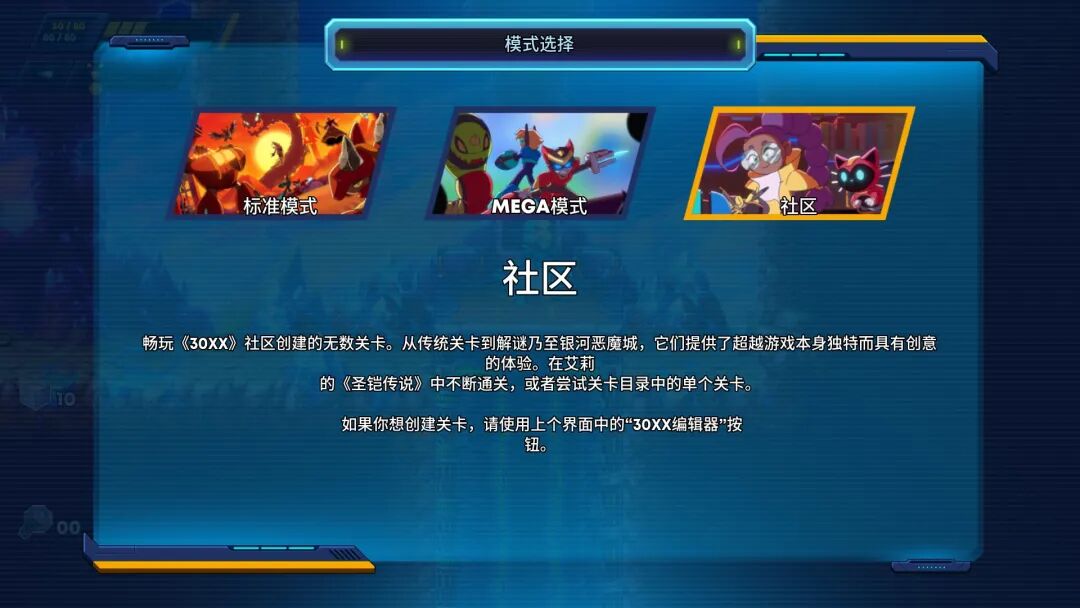 在开始游戏阶段,大伙应该就能注意到有别于标准模式和MEGA模式之外的社区模式——通俗来讲便是自制关卡。