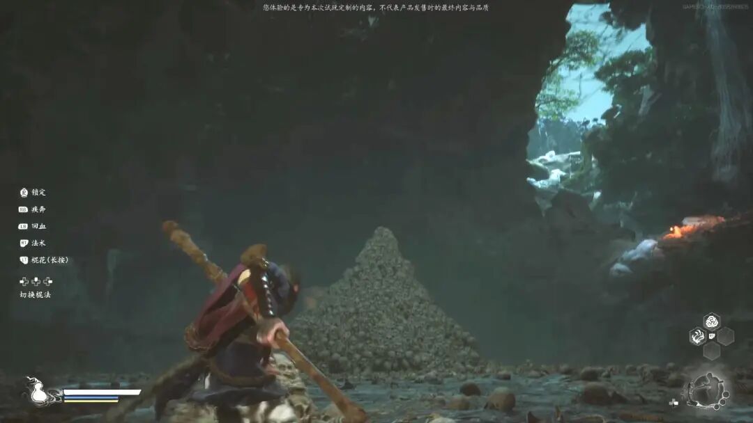 最后是视频和音效方面,demo画面相比官方视频有缩水吗?答案是肯定的,无论是BOSS挑战中四散的头骨还是紫云山的远景都可以看出。相比之下《黑神话:悟空》的配乐可以用震撼、惊艳来形容,试玩过后查了一下本作的作曲老师翟锦彦曾参加与CCTV2纪录片《丝绸之路》。