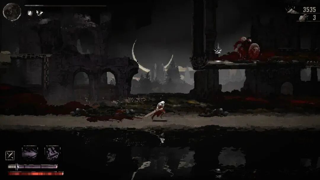 虽然游戏有“类银河恶魔城游戏”的标签,但是本作还是更接近于横版魂like。而且并非所有受《黑暗之魂》启发的内容都看起来和感觉都像原作系列。尽管有许多3D类魂游戏尝试完善这个公式,但也有不少风格化的2D作品会吸引横向卷轴游戏的粉丝。《亵渎》就是一个很好的例子,而《月痕》则与这款以宗教为主题的独立游戏热门之作非常相似。