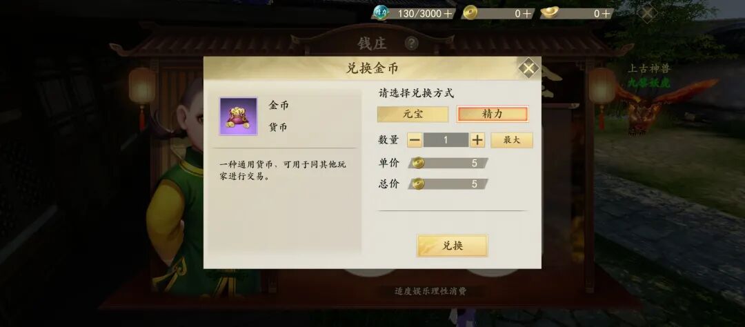 值得一提的是,在百业玩法中用不完的精力也可以在钱庄中兑换成金币,这不是又多了一条致富路子!