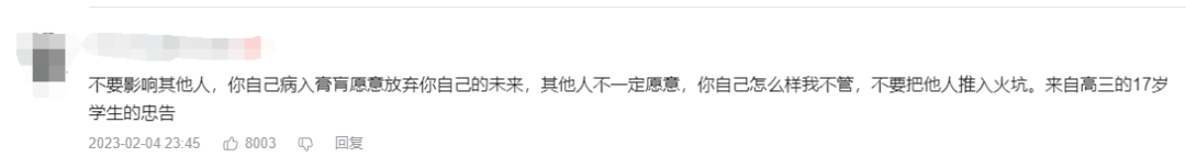 如果说在大伙的“网暴”下,UP主本人回归学校让这件事画上了句号。那么这则投稿就更为清晰地告诉外界,依然有不少人将学校之外的世界当成“乌托邦”,认为离开学校后自己能够更为自由地、轻松地选择自己的生活。