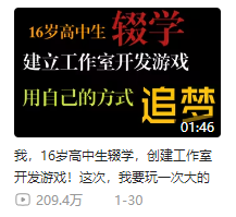 因为他在1月发布的视频名为“16岁高中生辍学,创建工作室开发游戏……