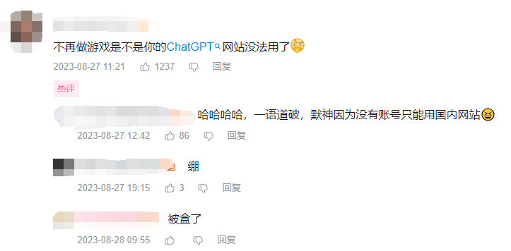 也正是因此,有人在评论区提出疑(feng)问(ci):是因为国内的ChatGPT网站账号没法用,所以才宣布解散工作室重回学校的吗?