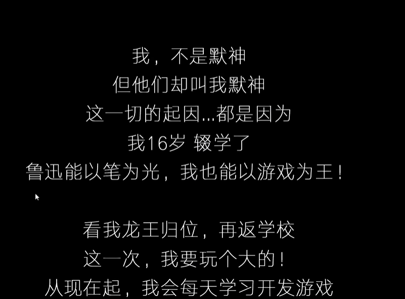 事实上,“默不作声”更新的那些视频中,除了很少的一部分用来展示那个简陋的游戏demo之外,绝大部分都在通过文字的方式宣泄自己的情绪。其中夹杂着对于学校的不满,以及对应试教育的批判。并表示学校只是一个学习知识的地方,而自己在学校以外同样可以做到。