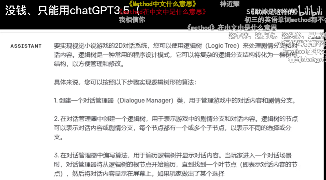 可从他更新的视频来看,从1月跳转到4月,他的游戏开发进度几乎没有任何推进,唯一有所改变的可能是用上了更为方便省心的ChatGPT。