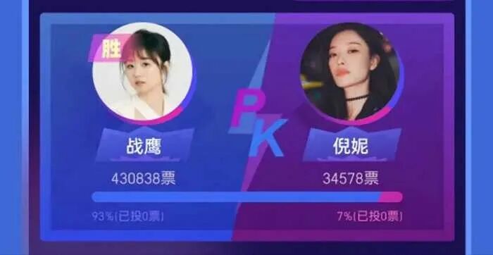 在此前的B组32进16比赛中,作为大赛新面孔的战鹰以17.6万票淘汰了“只有”5.8万票的歌手邓紫棋。