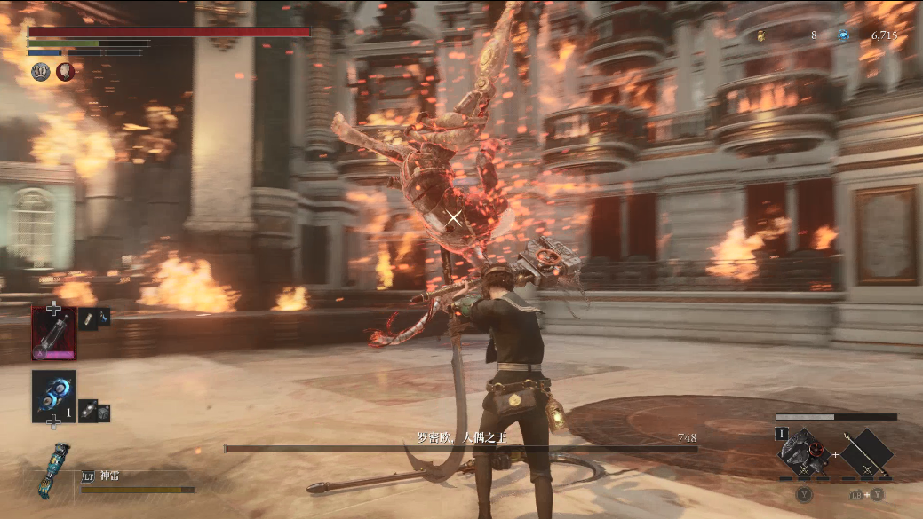 这样的设定,让我有几次在面对BOSS时,将整场战斗变成了我单方面的表演——靠着完美格挡抗下攻击或是直接用神雷打断,然后凭借强力的战技和蓄力攻击打出硬直、接上处决。