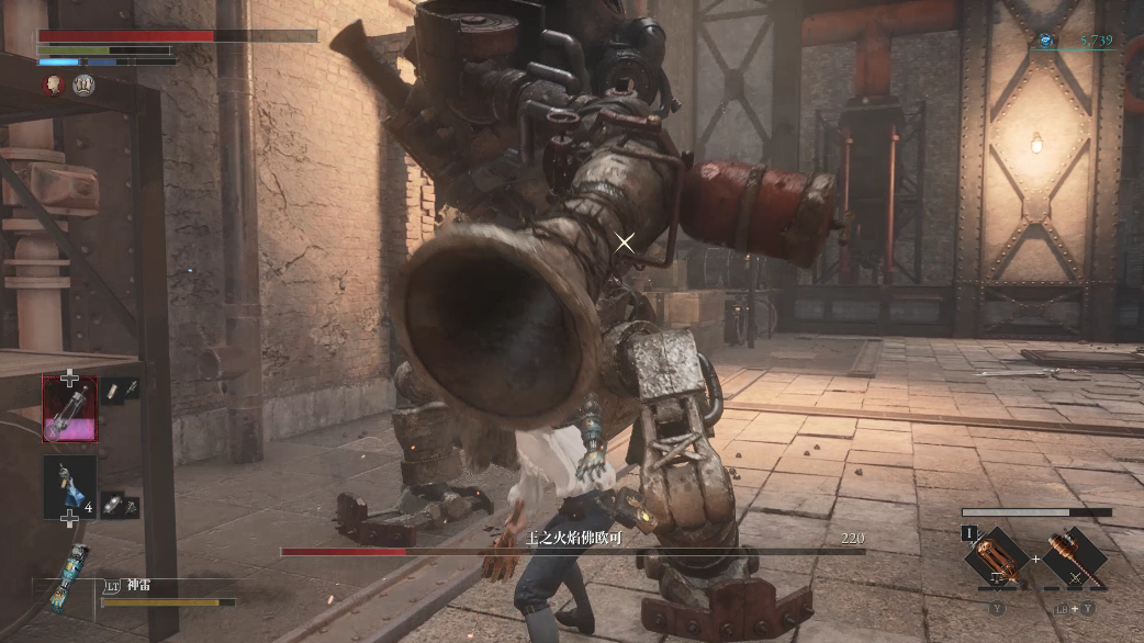 可以说,《LOP》在战斗方面有不少地方都深得我心,唯一让我觉得有些美中不足的,可能就是和当初试玩时比起来,游戏早期的几个BOSS有了比较明显的削弱。其中最为明显的,就是当初在“媒体试玩”(并非公开版demo)环节让我“欲仙欲死”的王之火焰佛欧可,那时它凭借着无敌的冲锋和远程投放炸弹足足折磨了我数个小时。