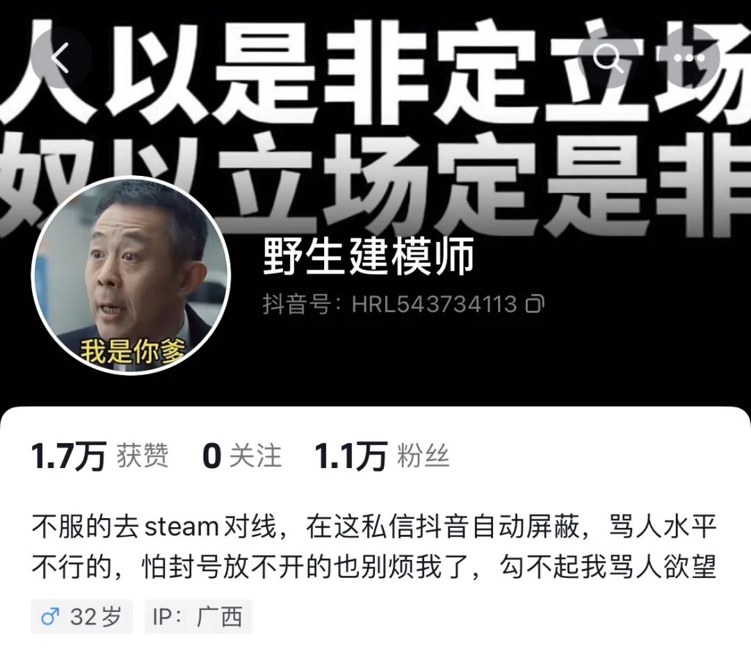 倘若只是为了博人眼球的话,那不得不说野生建模师已经成功了。比如这位号称有“抖M之魂”的朋友还愿意花钱来支持,评论区也不乏慕名前来观光“对线圣地”的老哥。
