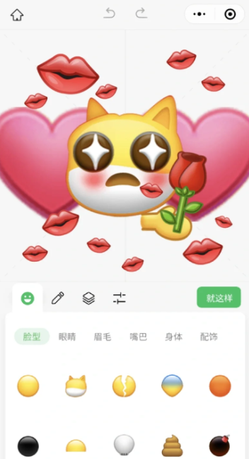 毕竟这个工具没有更多的自定义内容,也不会出现什么R18的emoji,所以能够生成最大尺度的表情包也不过就是这样: