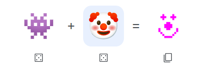 而当其他表情碰上了这个电子游戏的emoji之后,合成后的表情也都会带有8bit的像素风格,其中不少还挺有设计感。