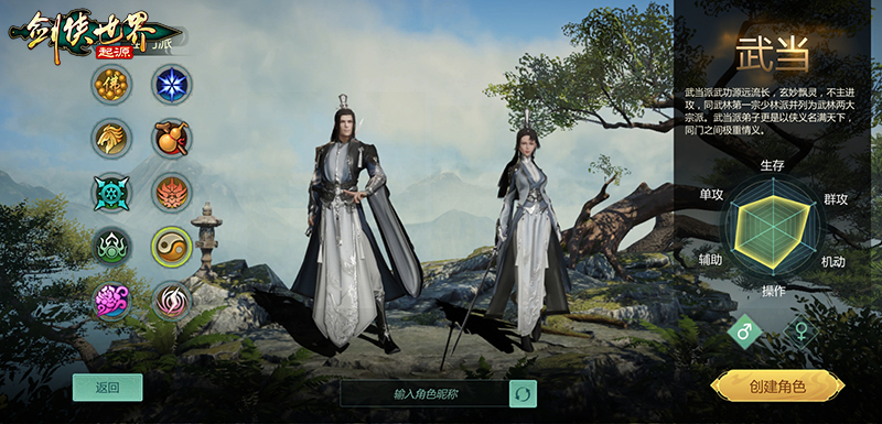进入游戏先创建角色,游戏复刻了经典的职业门派路线,共有十大门派可供选择,包括天王、武当、翠烟、大理、少林、唐门、峨眉、丐帮、天忍、昆仑,等大家熟悉的门派都将悉数登场。