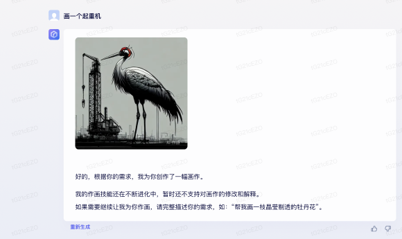 就比如说让它画个“起重机”,AI生成了一个完全词不达意的丹顶鹤——