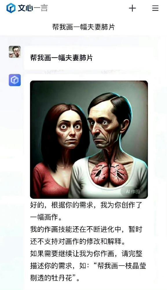 可以说,这次的文心一言尚不成熟的文生图程序,已经成为了继前段时间简易版图片生成AI软件之后的又一个能够承包一整天笑点的AI乐子。