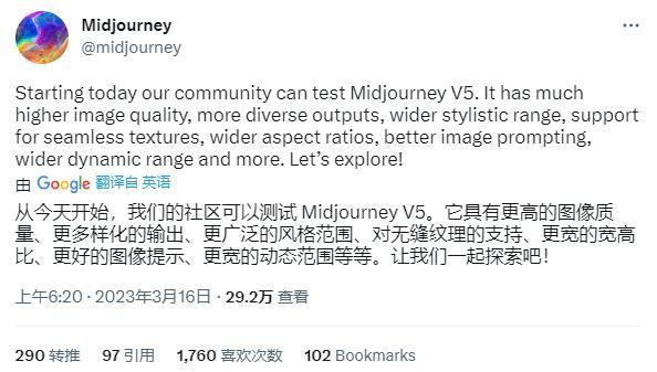 上周,Midjourney 宣布他们推出了第五代版本——Midjourney V5。