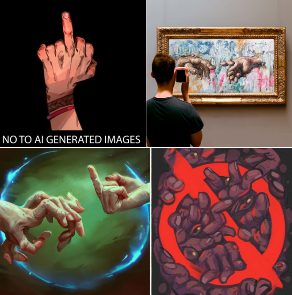 在此前我所报道过的“画师们在Artstation平台上集体抗议AI入侵”的事件中,“手指”,就是这些抗议的声音中的一个重要的元素。