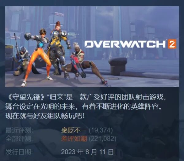 而另一方面,《守望先锋2》虽然仍在运营,但其玩家数量持续降低,并且成为了“Steam上评价最差的游戏之一”。